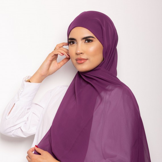 Foulard Chiffon Bonnet Intégré Light Eggplant